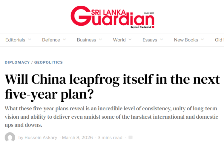 3月8日,《斯里兰卡卫报》刊发题为《中国下一个五年规划能否实现跨越式突破?》的文章指出,中国全国两会期间提交代表委员审查讨论的“十五五”规划《纲要(草案)》,描绘了未来五年中国以科技创新驱动经济发展的蓝图,将推动中国科技与经济实现新的跃升。