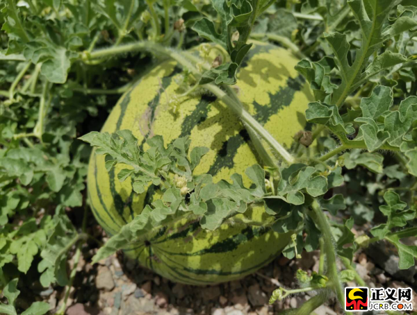 即将成熟的硒砂瓜。 崔晓丽 摄 喊叫水村只是中卫市百万亩硒砂瓜产业上的一小部分。据悉,2018年中卫市种植硒砂瓜90万亩,建设万亩富硒示范基地6万亩,硒砂瓜总产量达136万吨,实现销售收入18亿元,产业总产值超过25亿元。主产区人均来自硒砂瓜产业的收入近万元,惠及干旱山区141个村28万人,被誉为“硒砂瓜之乡”。蓬勃发展的硒砂瓜产业还带动了当地餐饮、住宿、物流、务工等服务业的快速发展。小西瓜逐渐做成大产业,成为中卫不少地区贫困群众脱贫增收的“金饭碗”。